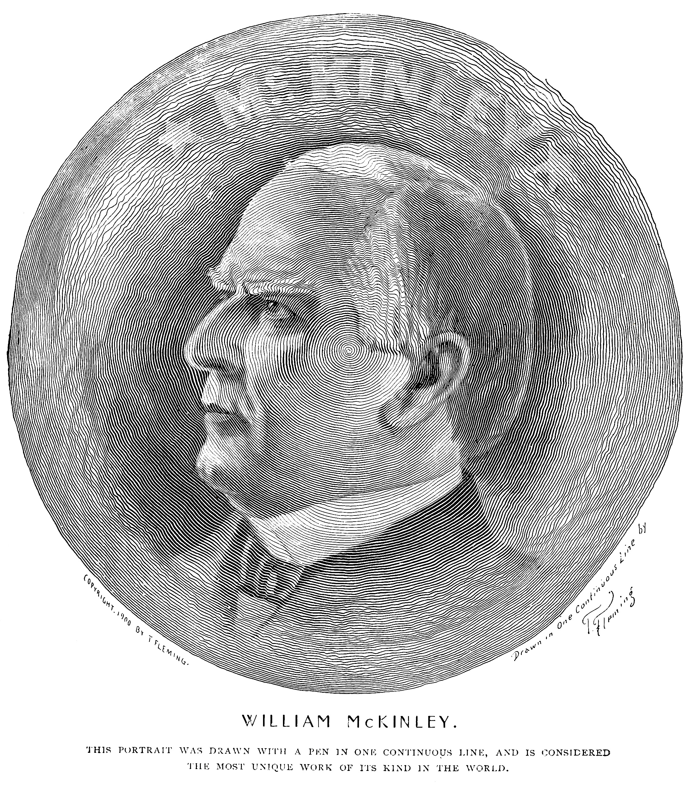 William McKinley in One Continuous Line. from Around the “Pan” with Uncle Hank: His trip through the Pan-American Exposition, by Thomas Fleming, 1901.